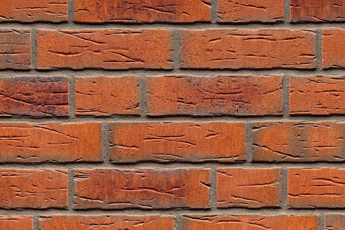 Das Klinkerriemchen R-114-687 wird aus gebranntem Ton im sogenannten Strangpress-Verfahren produziert, diese Klinkerriemchen / Flachverblender nennt man daher auch häufig Strangpress-Riemchen. Das Ergebnis dieser Herstellungsmethode ist mit dem Klinker-Riemchen BK-R-114-687 rot nuanciert ein wunderbarer Verblender in der Farbe rot nuanciert, die Oberfläche des Vormauer-Riemchens ist strukturiert.