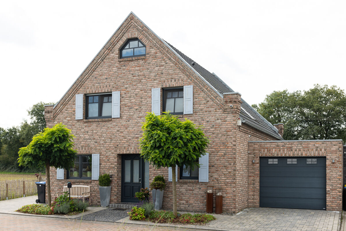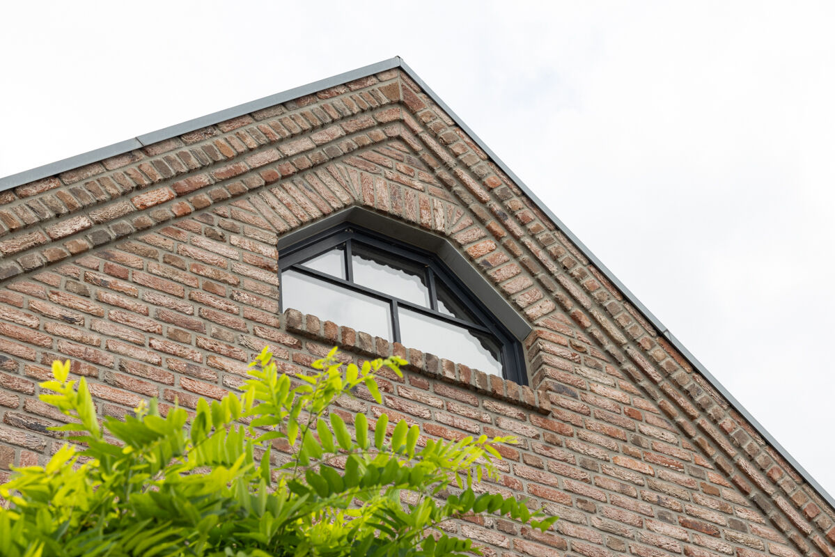 Die hier abgebildete Immobilie ist ein Einfamilienhaus 112-111-NF-H1, dessen Fassade mit dem Handform-Klinker BK-112-111-NF (Normalformat-Klinkerstein (NF)) rot - braun - bunt gestaltet wurde. Die verwendeten Klinker haben ein Normalformat (NF) mit Abmessungen von 240 x 115 x 71 mm (LxBxH) und werden aus gebranntem Ton hergestellt. Die Produktion der Klinker für das Einfamilienhaus erfolgt im Handform-Verfahren. Für die Klinkerfassade des Einfamilienhauses 112-111-NF-H1 werden pro Quadratmeter Fassadenfläche 48 Klinkersteine verwendet, den dort verwendeten Klinker finden Sie hier: Zum Handform-Klinker BK-112-111-NF (Normalformat-Klinkerstein (NF)) rot - braun - bunt