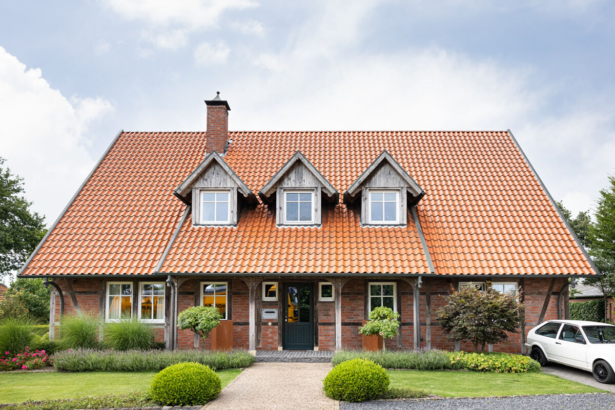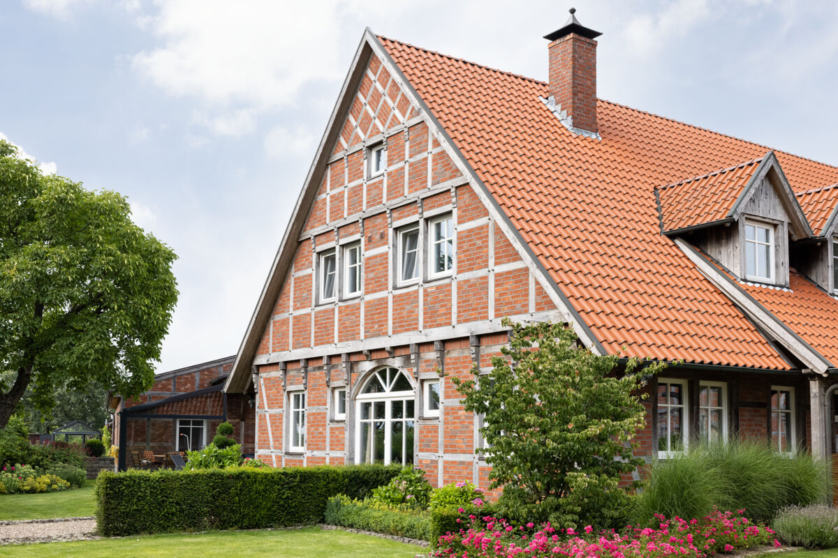 Zwei Elemente prägen den Landhausstil ganz besonders und sind daher ebenso bei der hier präsentierten Immobilie zu finden: Die Klinkerfassade und das Ziegeldach.