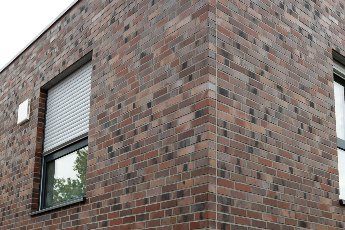 Der Strangpress-Klinker 110-122-NF Normalformat (abgekürzt NF), ein sehr weit verbreitetes Format für Klinker und Verblender in Deutschland. Wie alle Klinker-Formate ist auch das Normalformat streng nach DIN genormt und unterliegen der DIN EN 771-1, die bspw. die Festigkeit und Wasseraufnahmen vom Strangpress-Klinker / Verblender BK-110-122-NF (Normalformat-Klinkerstein (NF)) rot kohle bunt festlegt. Der im Normalformat produzierte Strangpress-Klinker / Verblender BK-110-122-NF (Normalformat-Klinkerstein (NF)) rot kohle bunt hat die Maße (Länge x Breite x Höhe) 240 x 115 x 71 mm und sorgt damit für eine tendenziell lebendige, aber gleichzeitig klare Fassadenwirkung. Entsprechend der Maße benötigen Sie vom Strangpress-Klinker 110-122-NF 48 Stück pro m² Fassade, die mit dem Klinkerstein im Normalformat versehen werden sollen. Einen Überblick über alle Klinkerformate und weitere Details dazu finden Sie hier: Klinker-Formate im Überblick.