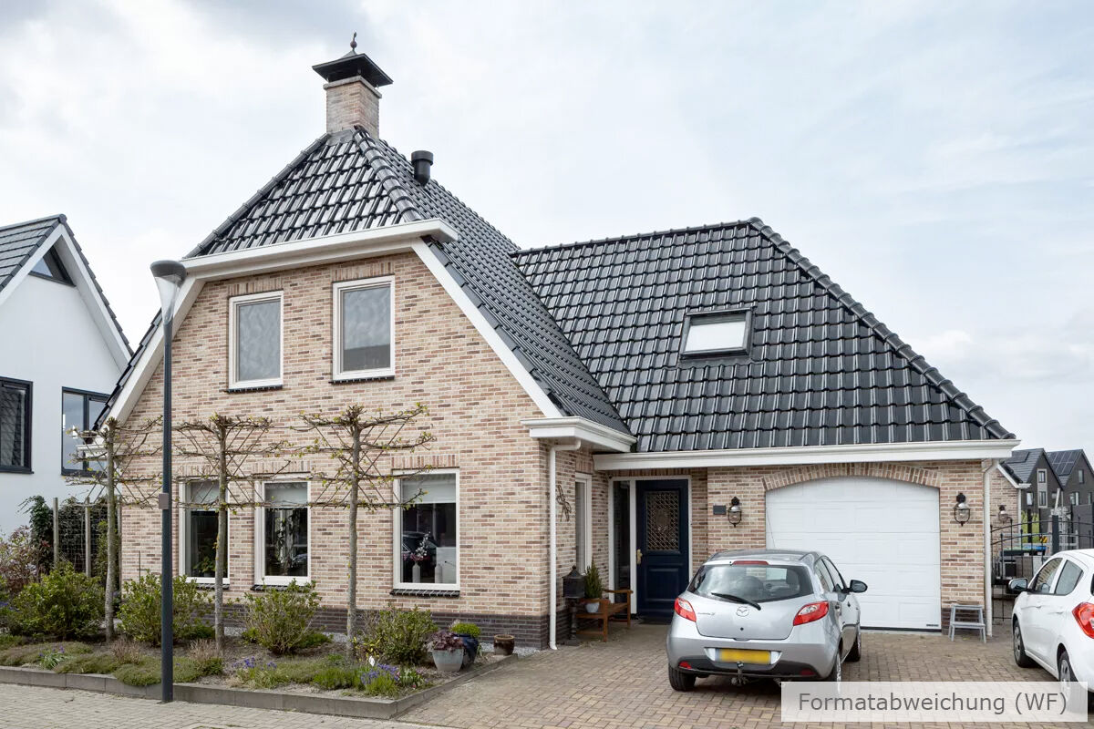 Die hier abgebildete Immobilie ist ein Einfamilienhaus 103-108-WDF-H8, dessen Fassade mit dem Handform-Klinker BK-103-108-WDF (Waaldickformat-Klinkerstein (WDF)) hellbraun-bunt gestaltet wurde. Die verwendeten Klinker haben ein Waaldickformat (WDF) mit Abmessungen von 210 x 100 x 65 mm (LxBxH) und werden aus gebrannter Ton hergestellt. Die Produktion der Klinker für das Einfamilienhaus erfolgt im Handform-Verfahren. Für die Klinkerfassade des Einfamilienhauses 103-108-WDF-H8 werden pro Quadratmeter Fassadenfläche 58 Klinkersteine verwendet, den dort verwendeten Klinker finden Sie hier: Zum Handform-Klinker BK-103-108-WDF (Waaldickformat-Klinkerstein (WDF)) hellbraun-bunt