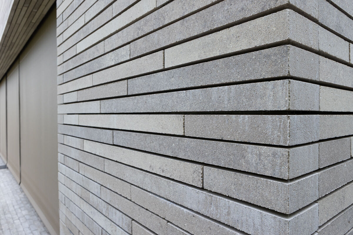 Die hier abgebildete Immobilie ist ein Einfamilienhaus 118-115-ModF-H6, dessen Fassade mit dem Strangpress-Klinker BK-118-115-ModF (Modulformat-Klinkerstein (ModF)) grau nuanciert gestaltet wurde. Die verwendeten Klinker haben ein Modulformat (ModF) mit Abmessungen von 595 x 95 x 40 mm (LxBxH) und werden aus Beton hergestellt. Die Produktion der Klinker für das Einfamilienhaus erfolgt im Strangpress-Verfahren. Für die Klinkerfassade des Einfamilienhauses 118-115-ModF-H6 werden pro Quadratmeter Fassadenfläche 38 Klinkersteine verwendet, den dort verwendeten Klinker finden Sie hier: Zum Strangpress-Klinker BK-118-115-ModF (Modulformat-Klinkerstein (ModF)) grau nuanciert