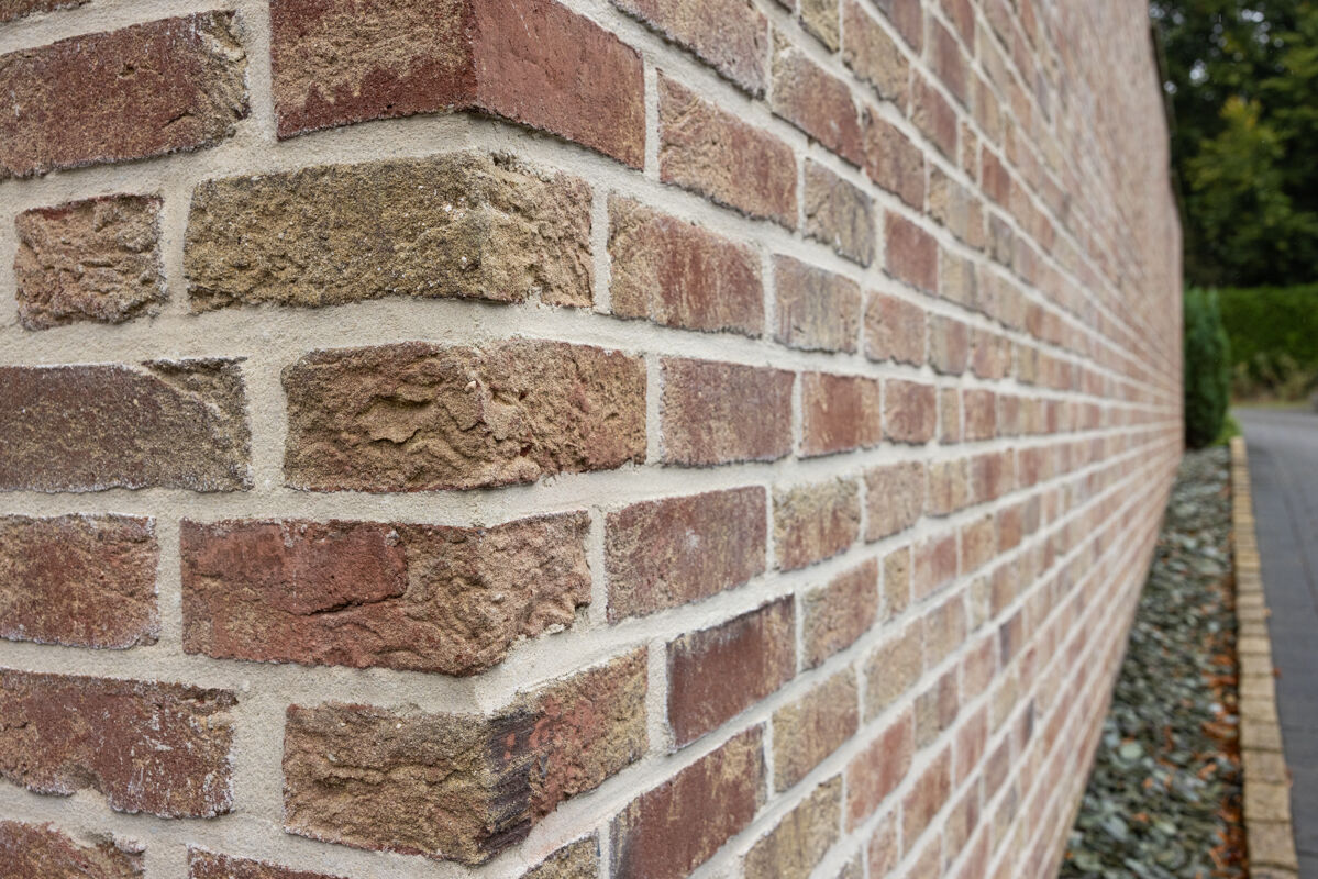 Die Wahl des passenden Klinkers für ein Einfamilienhaus erfolgt in der Regel nach drei Kriterien: Welche Farbe soll der Klinker haben, welches Klinkerformat sollen die Steine haben und nach welchem Herstellungsverfahren werden die Steine produziert. In diesem Fall haben sich die Besitzer des Einfamilienhauses 113-143-NF-H4 für einen Klinkerstein im Normalformat (NF) entschieden, so dass die einzelnen Steine mit den Maßen 240 x 115 x 71 mm (LxBxH) verbaut werden. In Kombination mit dem Handform-Verfahren und der Farbe rot - beige - bunt verleiht dieser Klinker dem Einfamilienhaus eine ganz charakteristische Optik und einen individuellen Charakter.