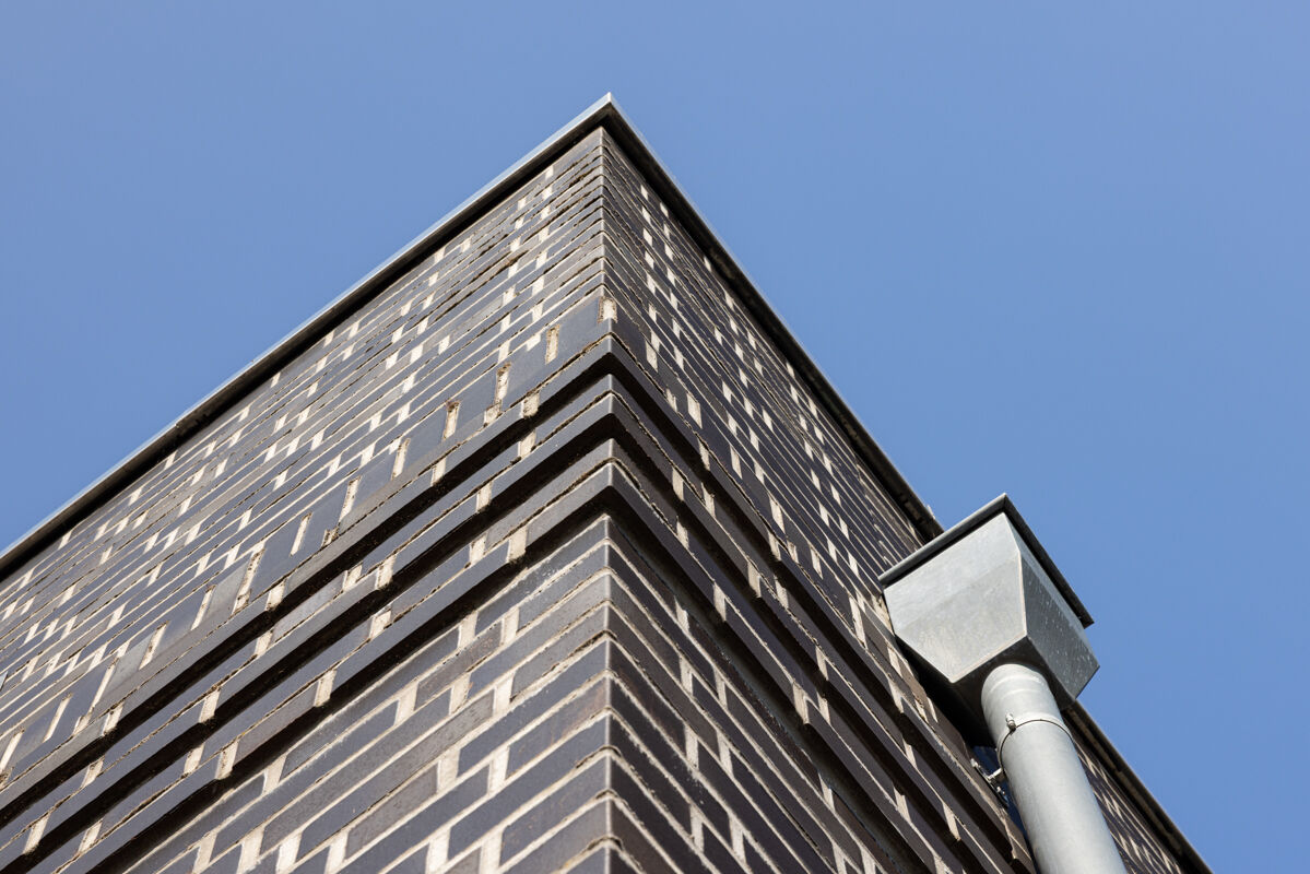 Die Wahl des passenden Klinkers für ein Mehrfamilienhaus erfolgt in der Regel nach drei Kriterien: Welche Farbe soll der Klinker haben, welches Klinkerformat sollen die Steine haben (diese beiden Faktoren prägen, in Kombination mit dem Mauerwerksverband, die Fassade am stärksten) und nach welchem Herstellungsverfahren werden die Steine produziert. In diesem Fall hat man sich bei der Planung des Mehrfamilienhauses 101-115-NF-H10 für einen Klinkerstein im Normalformat (NF) entschieden, so dass die einzelnen Steine mit den Maßen 240 x 115 x 71 mm (LxBxH) verbaut werden. In Kombination mit dem Strangpress-Verfahren und der Farbe schwarz - blau -bunt verleiht dieser Klinker dem Mehrfamilienhaus eine ganz charakteristische Optik und einen individuellen Charakter.