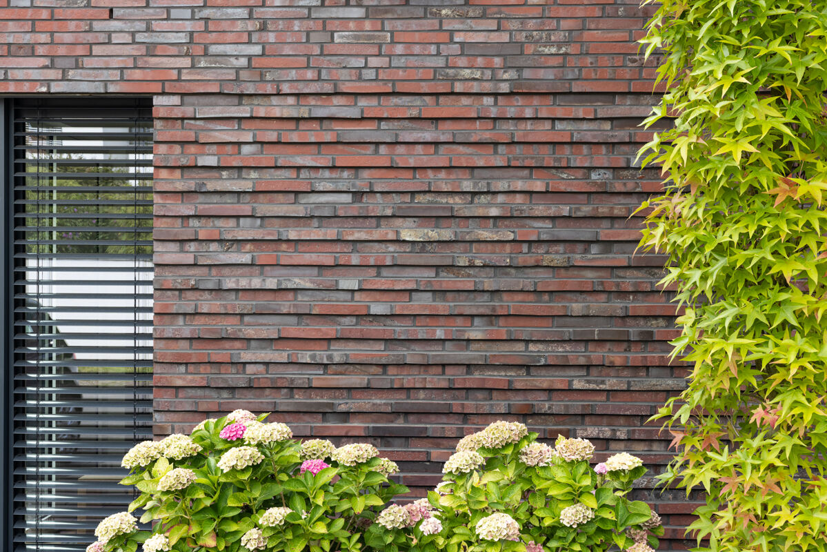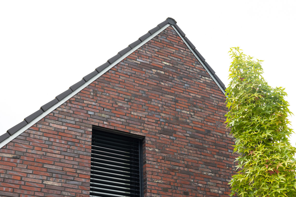 Die Wahl des passenden Klinkers für ein Einfamilienhaus erfolgt in der Regel nach drei Kriterien: Welche Farbe soll der Klinker haben, welches Klinkerformat sollen die Steine haben und nach welchem Herstellungsverfahren werden die Steine produziert. In diesem Fall haben sich die Besitzer des Einfamilienhauses 116-102-DF-H3 für einen Klinkerstein im Dünnformat (DF) entschieden, so dass die einzelnen Steine mit den Maßen 240 x 115 x 52 mm (LxBxH) verbaut werden. In Kombination mit dem Ringofen-Verfahren und der Farbe rot kohle bunt verleiht dieser Klinker dem Einfamilienhaus eine ganz charakteristische Optik und einen individuellen Charakter.