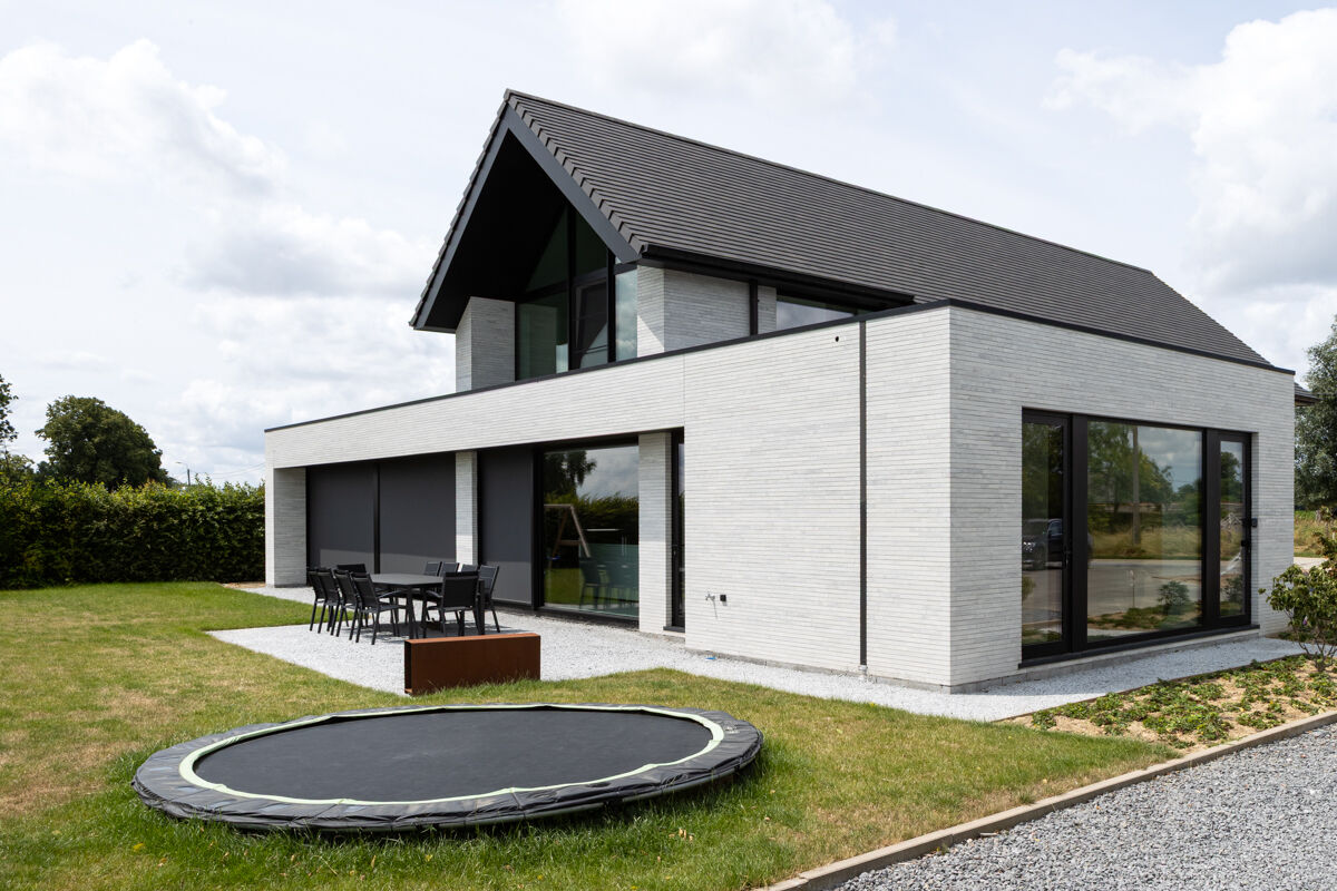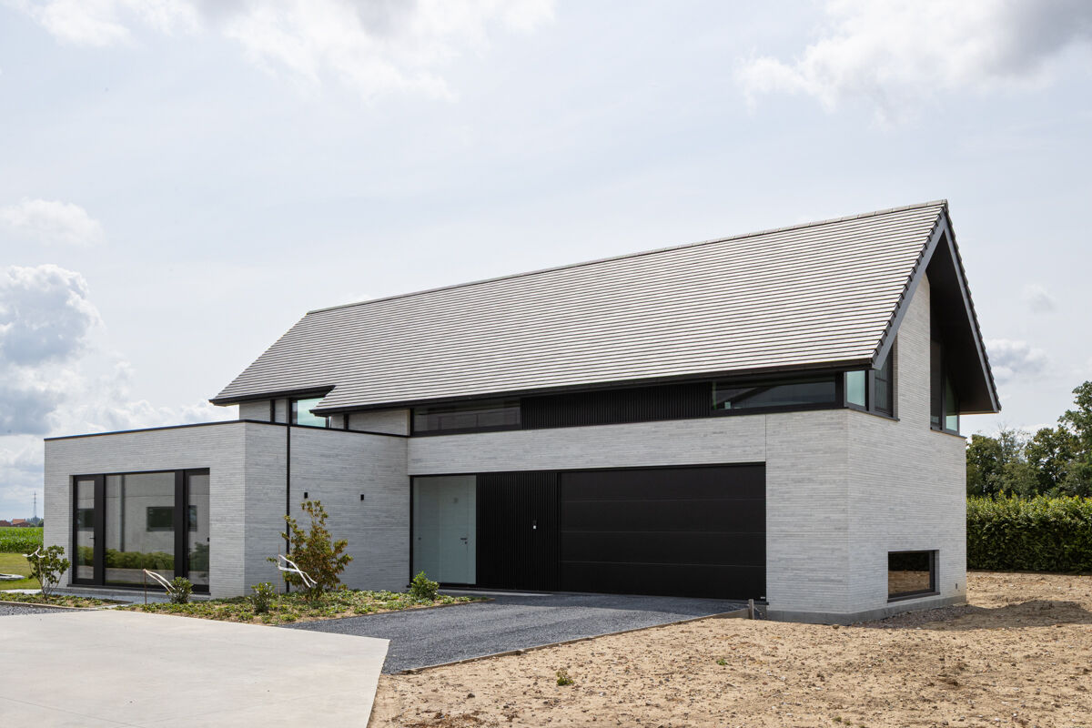 Einfamilienhäuser, insbesondere solche mit einer Klinkerfassade wie bei dem hier gezeigten Objekt mit dem Strangpress-Klinker BK-118-109-ModF (Modulformat-Klinkerstein (ModF)) grau weiß nuanciert, sind typischerweise eher in kleineren Städten, ländlichen Regionen oder städtischem Umland zu finden. Auch im Zuge der Nachverdichtung vieler Städte gehören einzelnstehende Einfamilienhäuser weiterhin zu den favorisierten Häusertypen, wenn es um eigene Immobilien geht, denn Objekte wie das Einfamilienhaus 118-109-ModF-H6 geben den Besitzern maximale Freiheit und Unabhängigkeit von der Nachbarschaft.