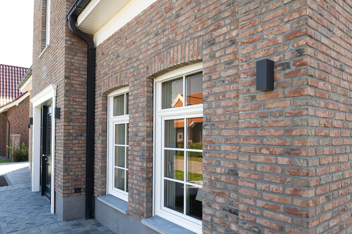 Die Wahl des passenden Klinkers für ein Einfamilienhaus erfolgt in der Regel nach drei Kriterien: Welche Farbe soll der Klinker haben, welches Klinkerformat sollen die Steine haben und nach welchem Herstellungsverfahren werden die Steine produziert. In diesem Fall haben sich die Besitzer des Einfamilienhauses 120-101-WF-H27 für einen Klinkerstein im Waalformat (WF) entschieden, so dass die einzelnen Steine mit den Maßen 210 x 100 x 50 mm (LxBxH) verbaut werden. In Kombination mit dem Handform-Verfahren und der Farbe rot-beige verleiht dieser Klinker dem Einfamilienhaus eine ganz charakteristische Optik und einen individuellen Charakter.
