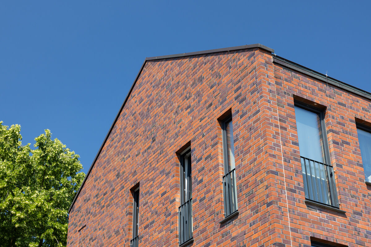 Immobilien mit viel Wohnraum, wie dem hier präsentierten Objekt mit dem Strangpress-Klinker BK-101-138-NF (Normalformat-Klinkerstein (NF)) rot -blau - bunt - Kohle, passen von der Fassade nicht nur in städtische Umgebungen, sondern fügen sich ebenso in ländlichen Gebieten sehr gut in den Immobilienbestand ein. Auch im Zuge des wachsenden Bedarfs von urbanem Wohnraum sind daher verklinkerte Mehrfamilienhäuser zu den immer stärker nachgefragten Objekten, denn sie bieten bspw. im Unterschied zu Einfamilienhäusern wesentlich mehr Menschen qualitativ hochwertigen Wohnraum auf vergleichsweise kleiner Grundfläche.