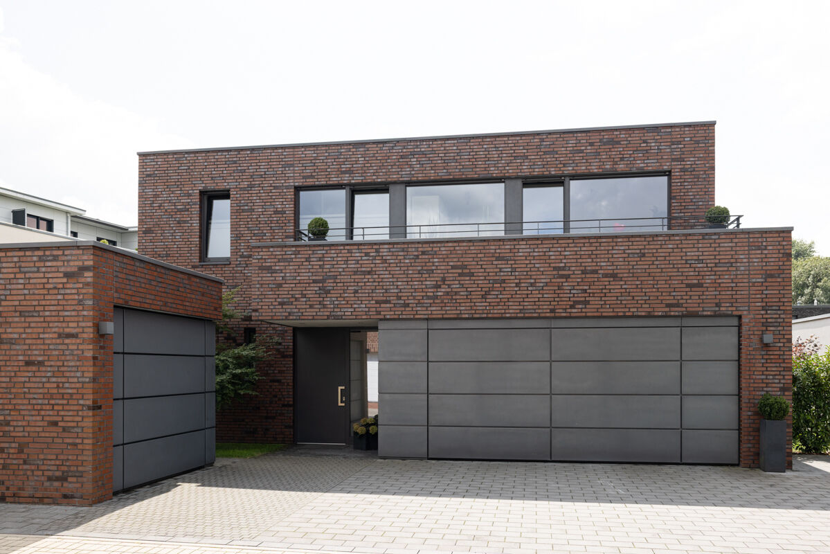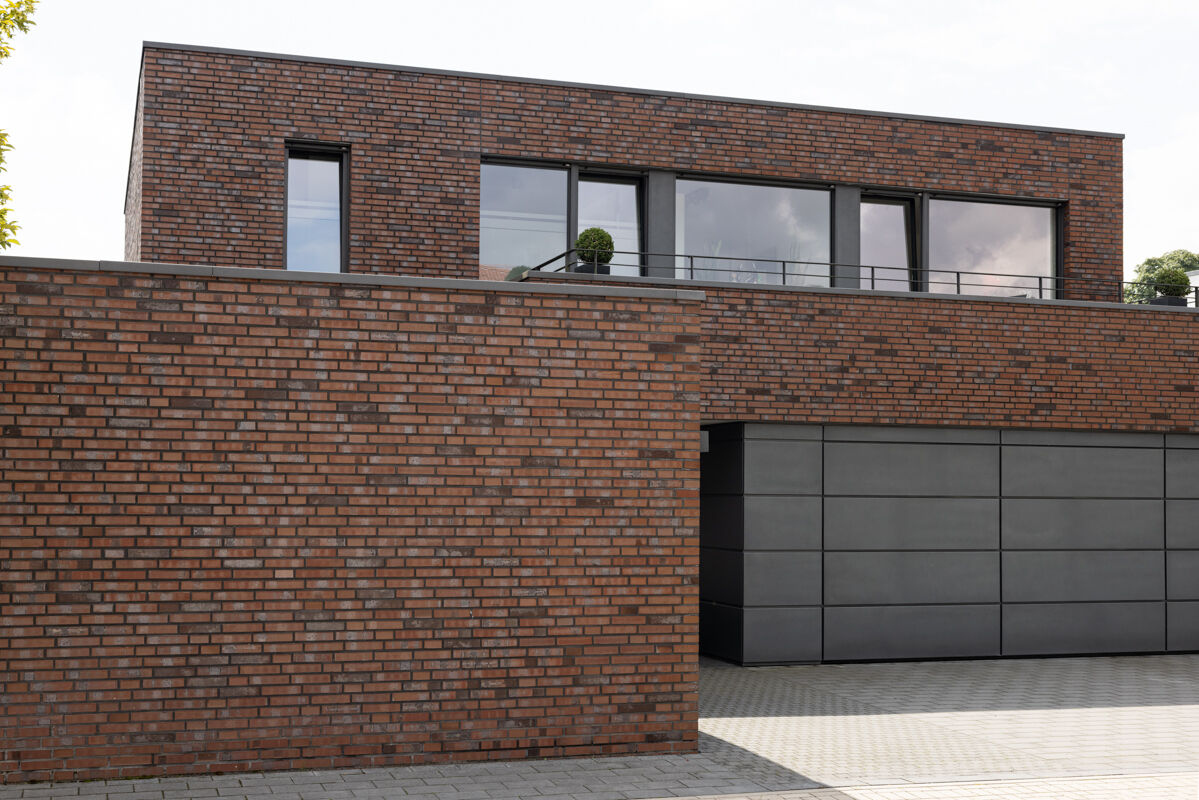 Das Bauhaus ist als Architektur-Stil entwickelt worden und hat sich dann auf zahlreiche Lebensbereiche ausgeweitet. Die hier präsentierte Immobilie 108-146-DF-H5 kann und möchte die Nähe zur Bauhaus-Architektur nicht verbergen, auch wenn die Verwendung vom Strangpress-Klinker BK-108-146-DF (Dünnformat-Klinkerstein (DF)) rot-braun in der Fassade nicht unbedingt typisch für den Bauhaus-Stil ist. Genau durch die Nutzung von Klinkersteinen im Dünnformat (DF), die im Strangpress-Verfahren produziert worden sind, wird aber die Individualität vom Bauhaus 108-146-DF-H5 geprägt und schafft damit eine gekonnte Kombination aus bekannten Stil-Elementen der Bauhaus-Epoche und zeitlos-klassischer Gebäudearchitektur. Den hier verwendeten Klinker finden sie hier: Zum Strangpress-Klinker BK-108-146-DF (Dünnformat-Klinkerstein (DF)) rot-braun