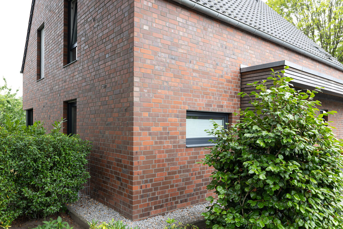 Einfamilienhäuser, insbesondere solche mit einer Klinkerfassade wie bei dem hier gezeigten Objekt mit dem Strangpress-Klinker BK-102-116-NF (Normalformat-Klinkerstein (NF)) braun-rot, sind typischerweise eher in kleineren Städten, ländlichen Regionen oder städtischem Umland zu finden. Auch im Zuge der Nachverdichtung vieler Städte gehören einzelnstehende Einfamilienhäuser weiterhin zu den favorisierten Häusertypen, wenn es um eigene Immobilien geht, denn Objekte wie das Einfamilienhaus 102-116-NF-H3 geben den Besitzern maximale Freiheit und Unabhängigkeit von der Nachbarschaft.