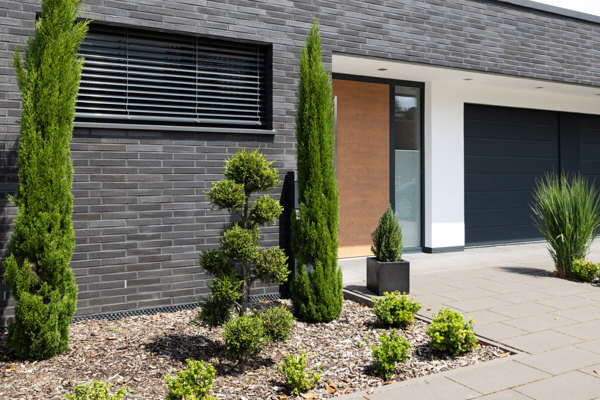 Einfamilienhäuser, insbesondere solche mit einer Klinkerfassade wie bei dem hier gezeigten Objekt mit dem Strangpress-Klinker BK-108-185-ModF (Modulformat-Klinkerstein (ModF)) schwarz-grau, sind typischerweise eher in kleineren Städten, ländlichen Regionen oder städtischem Umland zu finden. Auch im Zuge der Nachverdichtung vieler Städte gehören einzelnstehende Einfamilienhäuser weiterhin zu den favorisierten Häusertypen, wenn es um eigene Immobilien geht, denn Objekte wie das Einfamilienhaus 108-185-ModF-H1 geben den Besitzern maximale Freiheit und Unabhängigkeit von der Nachbarschaft.