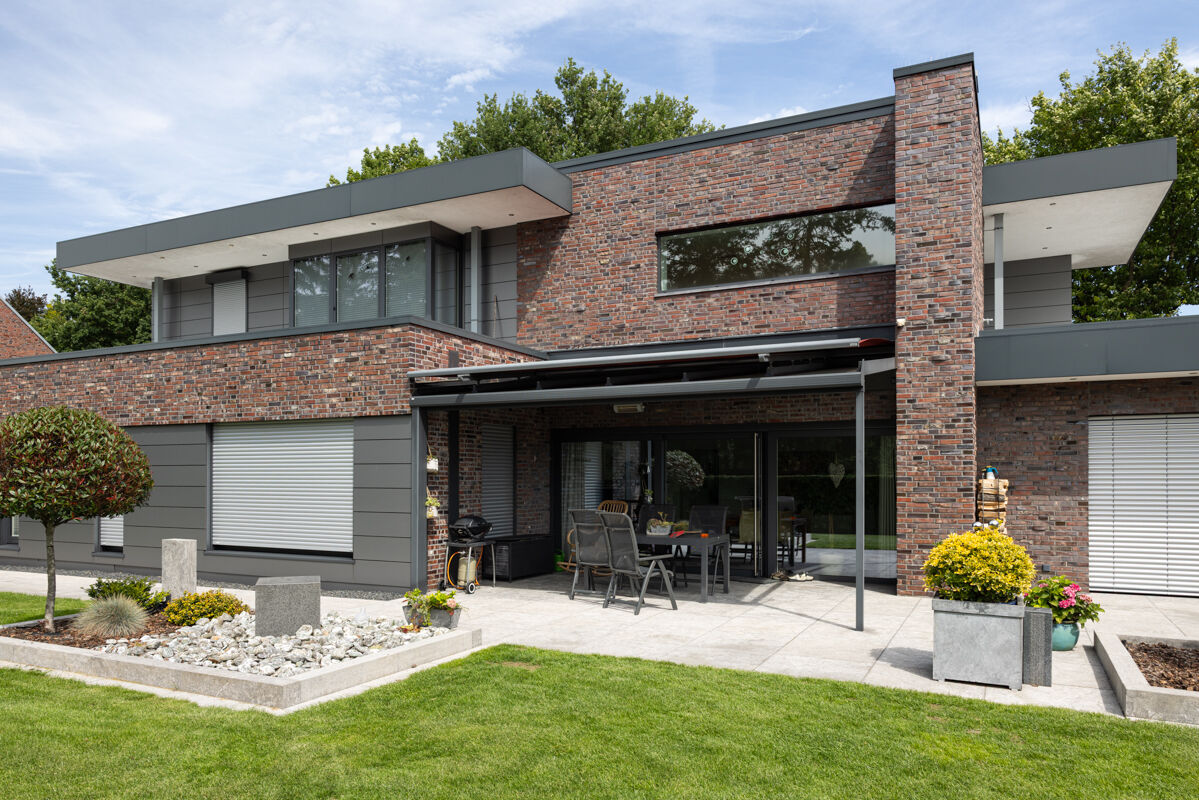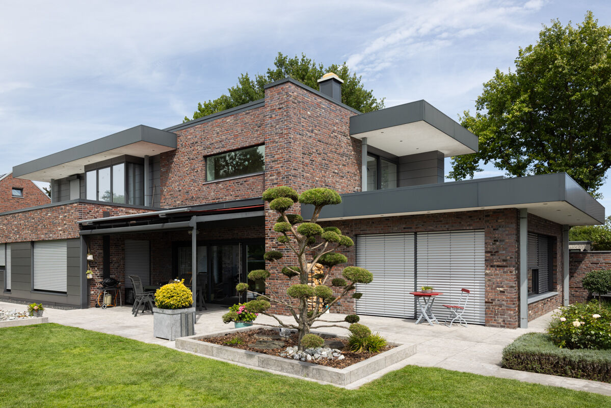 Bauhaus H2 mit Klinker 116-101-DF dunkelrot kohle bunt – ein moderner Wohntraum mit Klinkerfassade