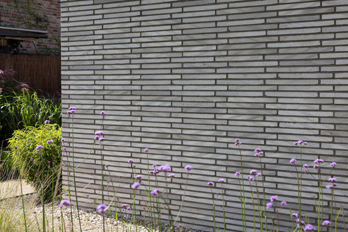 Die hier abgebildete Immobilie ist ein Einfamilienhaus 122-107-ModF-H4, dessen Fassade mit dem Wasserstrich-Klinker BK-122-107-ModF (Modulformat-Klinkerstein (ModF)) grau nuanciert gestaltet wurde. Die verwendeten Klinker haben ein Modulformat (ModF) mit Abmessungen von 468 x 108 x 38 mm (LxBxH) und werden aus gebrannter Ton hergestellt. Die Produktion der Klinker für das Einfamilienhaus erfolgt im Wasserstrich-Verfahren. Für die Klinkerfassade des Einfamilienhauses 122-107-ModF-H4 werden pro Quadratmeter Fassadenfläche 42 Klinkersteine verwendet, den dort verwendeten Klinker finden Sie hier: Zum Wasserstrich-Klinker BK-122-107-ModF (Modulformat-Klinkerstein (ModF)) grau nuanciert