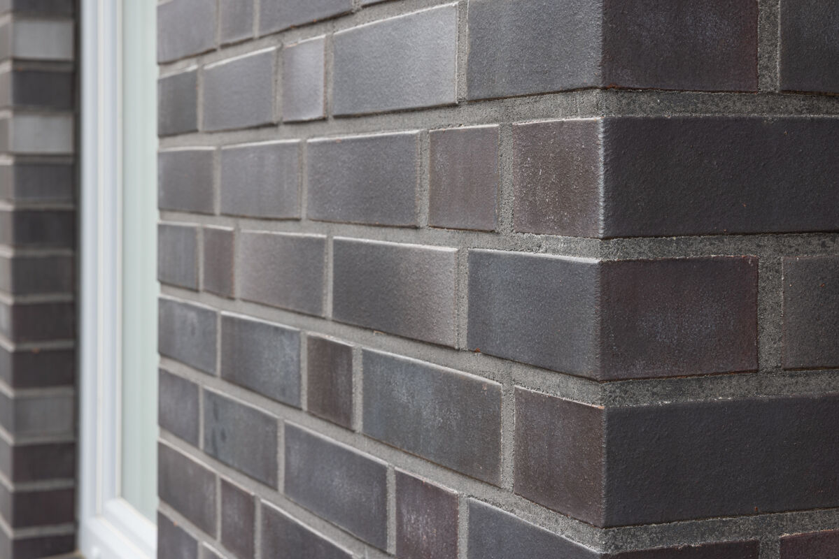 Die Wahl des passenden Klinkers für ein Mehrfamilienhaus erfolgt in der Regel nach drei Kriterien: Welche Farbe soll der Klinker haben, welches Klinkerformat sollen die Steine haben (diese beiden Faktoren prägen, in Kombination mit dem Mauerwerksverband, die Fassade am stärksten) und nach welchem Herstellungsverfahren werden die Steine produziert. In diesem Fall hat man sich bei der Planung des Mehrfamilienhauses 102-110-NF-H9 für einen Klinkerstein im Normalformat (NF) entschieden, so dass die einzelnen Steine mit den Maßen 240 x 115 x 71 mm (LxBxH) verbaut werden. In Kombination mit dem Strangpress-Verfahren und der Farbe blau-schwarz verleiht dieser Klinker dem Mehrfamilienhaus eine ganz charakteristische Optik und einen individuellen Charakter.