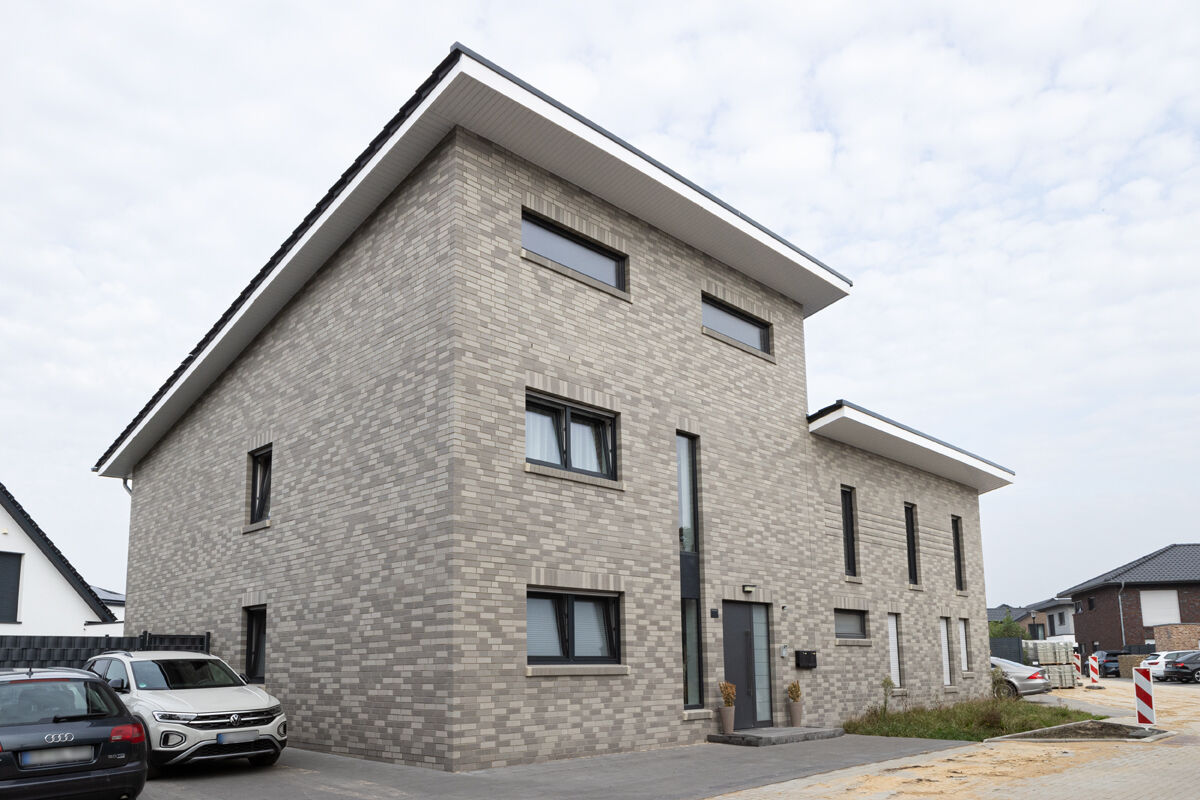 Immobilien mit viel Wohnraum, wie dem hier präsentierten Objekt mit dem Strangpress-Klinker / Verblender BK-104-188-ModF (Modulformat-Klinkerstein (ModF)) grau bunt, passen von der Fassade nicht nur in städtische Umgebungen, sondern fügen sich ebenso in ländlichen Gebieten sehr gut in den Immobilienbestand ein. Auch im Zuge des wachsenden Bedarfs von urbanem Wohnraum sind daher verklinkerte Mehrfamilienhäuser zu den immer stärker nachgefragten Objekten, denn sie bieten bspw. im Unterschied zu Einfamilienhäusern wesentlich mehr Menschen qualitativ hochwertigen Wohnraum auf vergleichsweise kleiner Grundfläche.