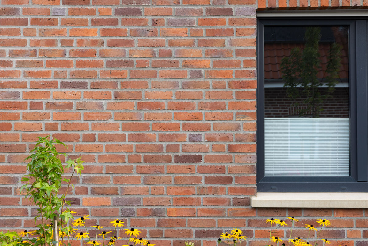 Die Wahl des passenden Klinkers für ein Einfamilienhaus erfolgt in der Regel nach drei Kriterien: Welche Farbe soll der Klinker haben, welches Klinkerformat sollen die Steine haben und nach welchem Herstellungsverfahren werden die Steine produziert. In diesem Fall haben sich die Besitzer des Einfamilienhauses 111-101-NF-H12 für einen Klinkerstein im Normalformat (NF) entschieden, so dass die einzelnen Steine mit den Maßen 240 x 115 x 71 mm (LxBxH) verbaut werden. In Kombination mit dem Wasserstrich-Verfahren und der Farbe rot-braun verleiht dieser Klinker dem Einfamilienhaus eine ganz charakteristische Optik und einen individuellen Charakter.