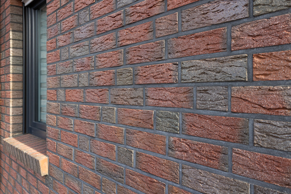 Die Wahl des passenden Klinkers für ein Einfamilienhaus erfolgt in der Regel nach drei Kriterien: Welche Farbe soll der Klinker haben, welches Klinkerformat sollen die Steine haben und nach welchem Herstellungsverfahren werden die Steine produziert. In diesem Fall haben sich die Besitzer des Einfamilienhauses 104-120-NF-H5 für einen Klinkerstein im Normalformat (NF) entschieden, so dass die einzelnen Steine mit den Maßen 240 x 115 x 71 mm (LxBxH) verbaut werden. In Kombination mit dem Strangpress-Verfahren und der Farbe rot-blau verleiht dieser Klinker dem Einfamilienhaus eine ganz charakteristische Optik und einen individuellen Charakter.