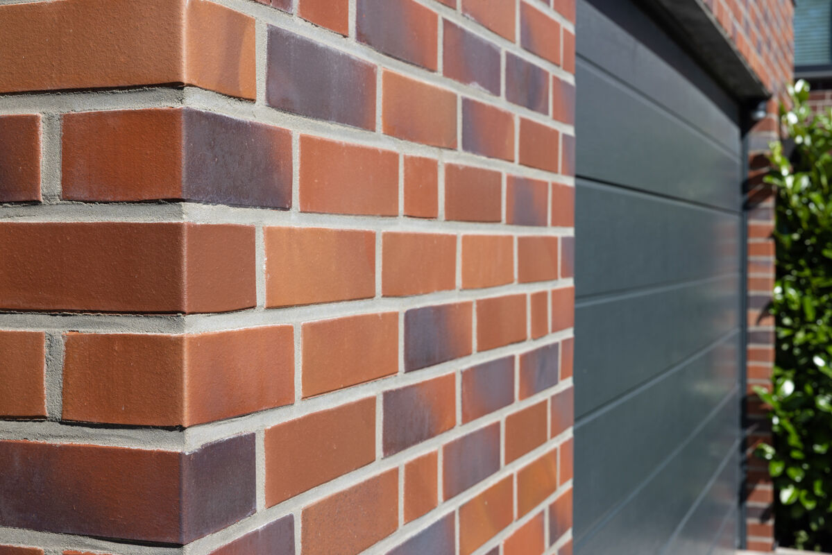 Die Wahl des passenden Klinkers für ein Einfamilienhaus erfolgt in der Regel nach drei Kriterien: Welche Farbe soll der Klinker haben, welches Klinkerformat sollen die Steine haben und nach welchem Herstellungsverfahren werden die Steine produziert. In diesem Fall haben sich die Besitzer des Einfamilienhauses 102-105-NF-H7 für einen Klinkerstein im Normalformat (NF) entschieden, so dass die einzelnen Steine mit den Maßen 240 x 115 x 71 mm (LxBxH) verbaut werden. In Kombination mit dem Strangpress-Verfahren und der Farbe rot-blau-braun verleiht dieser Klinker dem Einfamilienhaus eine ganz charakteristische Optik und einen individuellen Charakter.