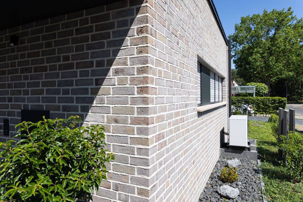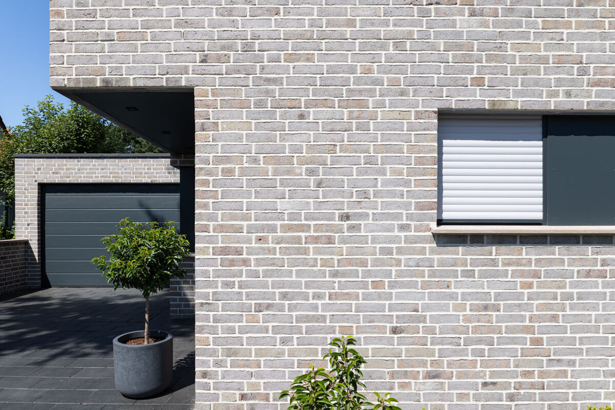 Die Wahl des passenden Klinkers für ein Einfamilienhaus erfolgt in der Regel nach drei Kriterien: Welche Farbe soll der Klinker haben, welches Klinkerformat sollen die Steine haben und nach welchem Herstellungsverfahren werden die Steine produziert. In diesem Fall haben sich die Besitzer des Einfamilienhauses 104-144-NF-H4 für einen Klinkerstein im Normalformat (NF) entschieden, so dass die einzelnen Steine mit den Maßen 240 x 115 x 71 mm (LxBxH) verbaut werden. In Kombination mit dem Wasserstrich-Verfahren und der Farbe grau - Kohle verleiht dieser Klinker dem Einfamilienhaus eine ganz charakteristische Optik und einen individuellen Charakter.
