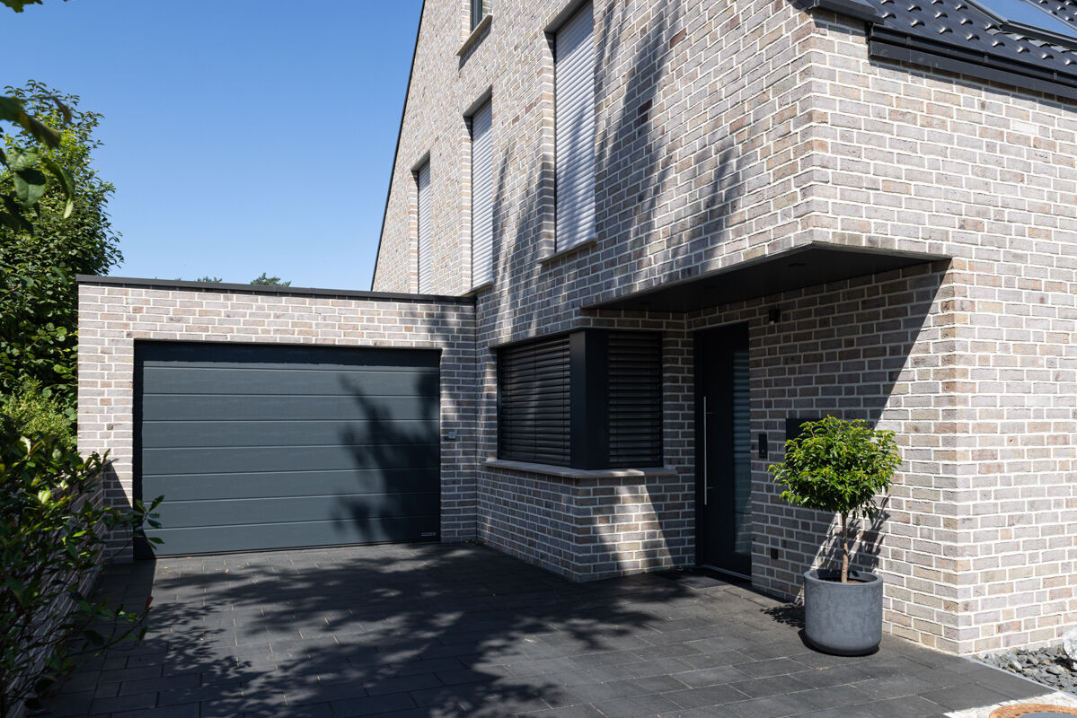 Die hier abgebildete Immobilie ist ein Einfamilienhaus 104-144-NF-H4, dessen Fassade mit dem Wasserstrich-Klinker BK-104-144-NF (Normalformat-Klinkerstein (NF)) grau - Kohle gestaltet wurde. Die verwendeten Klinker haben ein Normalformat (NF) mit Abmessungen von 240 x 115 x 71 mm (LxBxH) und werden aus gebrannter Ton hergestellt. Die Produktion der Klinker für das Einfamilienhaus erfolgt im Wasserstrich-Verfahren. Für die Klinkerfassade des Einfamilienhauses 104-144-NF-H4 werden pro Quadratmeter Fassadenfläche 48 Klinkersteine verwendet, den dort verwendeten Klinker finden Sie hier: Zum Wasserstrich-Klinker BK-104-144-NF (Normalformat-Klinkerstein (NF)) grau - Kohle