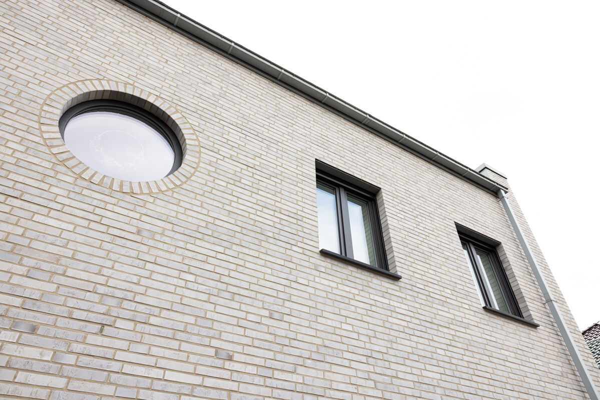 Die Wahl des passenden Klinkers für ein Einfamilienhaus erfolgt in der Regel nach drei Kriterien: Welche Farbe soll der Klinker haben, welches Klinkerformat sollen die Steine haben und nach welchem Herstellungsverfahren werden die Steine produziert. In diesem Fall haben sich die Besitzer des Einfamilienhauses 108-212-DF-H1 für einen Klinkerstein im Dünnformat (DF) entschieden, so dass die einzelnen Steine mit den Maßen 240 x 115 x 52 mm (LxBxH) verbaut werden. In Kombination mit dem Strangpress-Verfahren und der Farbe grau bunt verleiht dieser Klinker dem Einfamilienhaus eine ganz charakteristische Optik und einen individuellen Charakter.