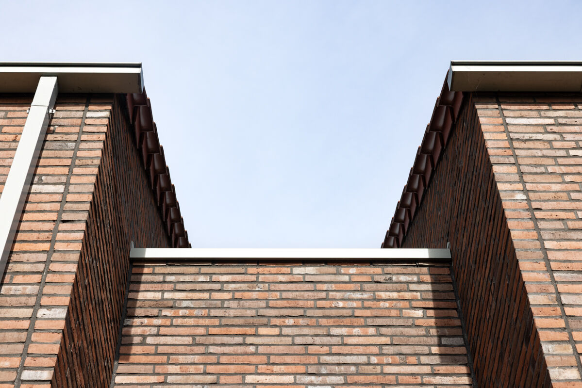 Die Wahl des passenden Klinkers für ein Mehrfamilienhaus erfolgt in der Regel nach drei Kriterien: Welche Farbe soll der Klinker haben, welches Klinkerformat sollen die Steine haben (diese beiden Faktoren prägen, in Kombination mit dem Mauerwerksverband, die Fassade am stärksten) und nach welchem Herstellungsverfahren werden die Steine produziert. In diesem Fall hat man sich bei der Planung des Mehrfamilienhauses 102-183-DF-H5 für einen Klinkerstein im Dünnformat (DF) entschieden, so dass die einzelnen Steine mit den Maßen 240 x 115 x 52 mm (LxBxH) verbaut werden. In Kombination mit dem Wasserstrich-Verfahren und der Farbe rot kohle bunt verleiht dieser Klinker dem Mehrfamilienhaus eine ganz charakteristische Optik und einen individuellen Charakter.