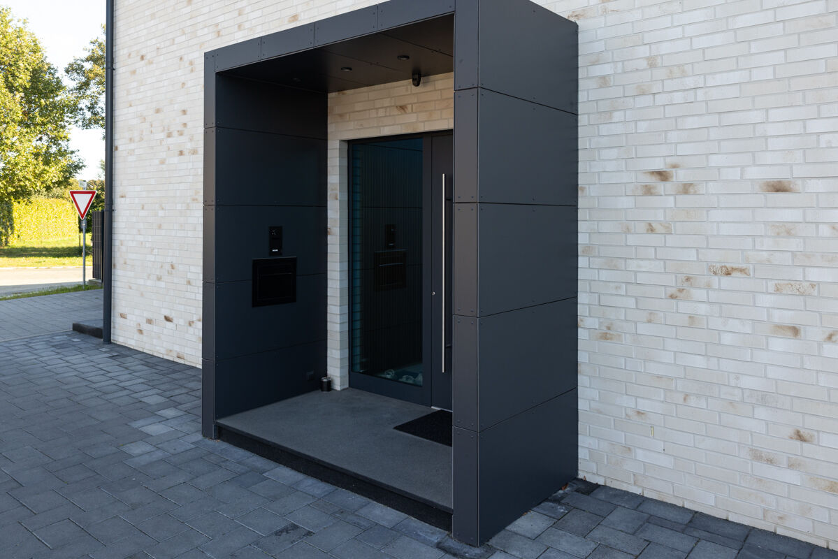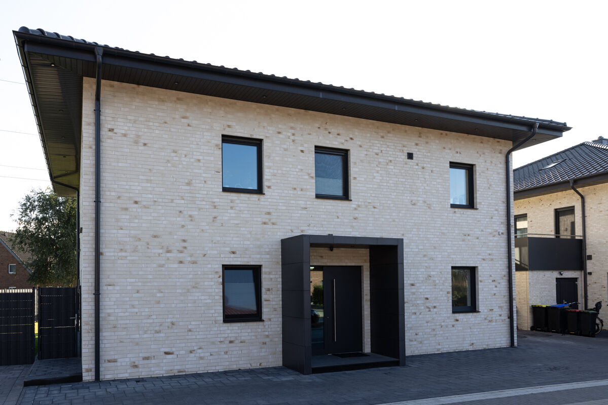 Einfamilienhäuser, insbesondere solche mit einer Klinkerfassade wie bei dem hier gezeigten Objekt mit dem Strangpress-Klinker BK-104-153-ModF (Modulformat-Klinkerstein (ModF)) grau - weiß nunaciert, sind typischerweise eher in kleineren Städten, ländlichen Regionen oder städtischem Umland zu finden. Auch im Zuge der Nachverdichtung vieler Städte gehören einzelnstehende Einfamilienhäuser weiterhin zu den favorisierten Häusertypen, wenn es um eigene Immobilien geht, denn Objekte wie das Einfamilienhaus 104-153-ModF-H2 geben den Besitzern maximale Freiheit und Unabhängigkeit von der Nachbarschaft.