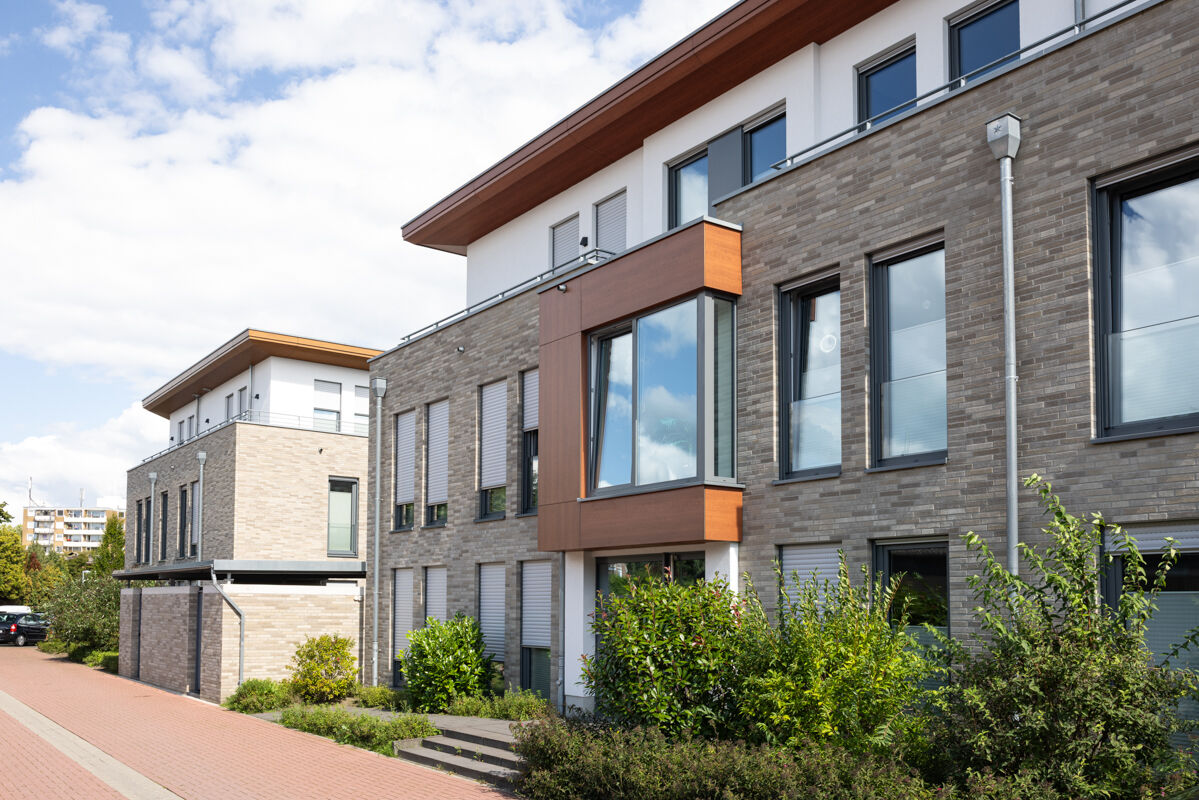 Immobilien mit viel Wohnraum, wie dem hier präsentierten Objekt mit dem Strangpress-Klinker BK-104-155-ModF (Modulformat-Klinkerstein (ModF)) grau - beige, passen von der Fassade nicht nur in städtische Umgebungen, sondern fügen sich ebenso in ländlichen Gebieten sehr gut in den Immobilienbestand ein. Auch im Zuge des wachsenden Bedarfs von urbanem Wohnraum sind daher verklinkerte Mehrfamilienhäuser zu den immer stärker nachgefragten Objekten, denn sie bieten bspw. im Unterschied zu Einfamilienhäusern wesentlich mehr Menschen qualitativ hochwertigen Wohnraum auf vergleichsweise kleiner Grundfläche.