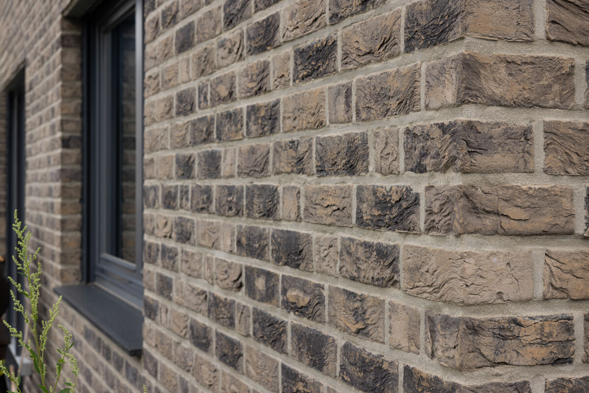 Für die Auswahl des passenden Klinkerstein für die neue Stadtvilla werden typischerweise drei wichtige Fragen gestellt: Welche Farbe soll der Klinker haben? Welches Klinkerformat sollen die Steine haben? Nach welchem Herstellungsverfahren werden die Steine produziert? Bei der hier präsentierten Stadtimmobilie wurde ein Klinkerstein im Waaldickformat (WDF) gewählt, so dass die einzelnen Steine mit den Maßen 215 x 100 x 65 mm (LxBxH) verbaut werden. In Kombination mit dem Handform-Verfahren und der Farbe beige- grau - anthrazit entsteht dann die individuelle Optik der Fassade und kann den Wünschen und Vorstellungen der neuen Besitzer gerecht werden.