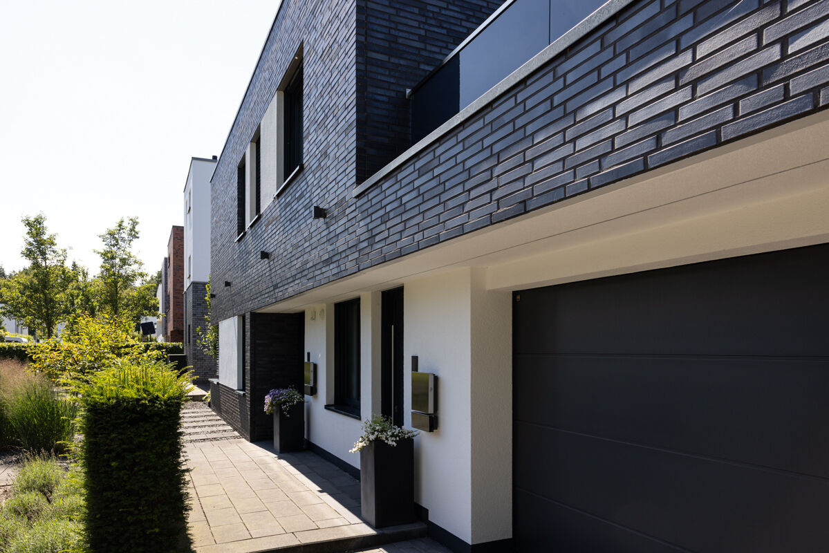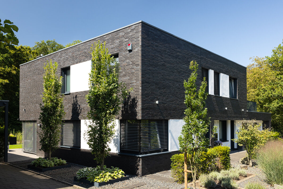 Einfamilienhäuser, insbesondere solche mit einer Klinkerfassade wie bei dem hier gezeigten Objekt mit dem Strangpress-Klinker BK-108-101-ModF (Modulformat-Klinkerstein (ModF)) schwarz-grau, sind typischerweise eher in kleineren Städten, ländlichen Regionen oder städtischem Umland zu finden. Auch im Zuge der Nachverdichtung vieler Städte gehören einzelnstehende Einfamilienhäuser weiterhin zu den favorisierten Häusertypen, wenn es um eigene Immobilien geht, denn Objekte wie das Einfamilienhaus 108-101-ModF-H1 geben den Besitzern maximale Freiheit und Unabhängigkeit von der Nachbarschaft.