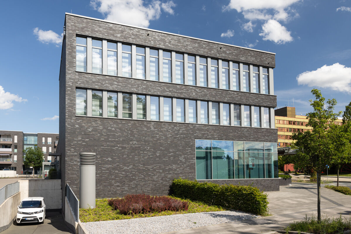 Bei der Kalkulation einer Büroimmobilie hat die Fassade nur einen geringen Anteil an der Gesamtsumme, auch wenn man sich wie hier für eine Fassade mit dem Strangpress-Klinker BK-108-101-NF (Normalformat-Klinkerstein (NF)) schwarz-grau entscheidet. Die Kosten einer Klinkerfassade hängen dabei zum Beispiel vom Preis des Klinkers, aber ebenso von den Nebenkosten.