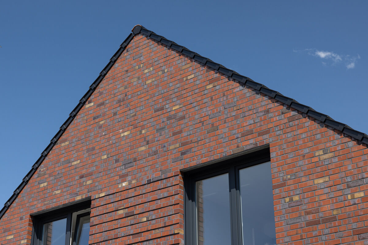 Einfamilienhäuser, insbesondere solche mit einer Klinkerfassade wie bei dem hier gezeigten Objekt mit dem Strangpress-Klinker BK-108-119-NF (Normalformat-Klinkerstein (NF)) rot-bunt, sind typischerweise eher in kleineren Städten, ländlichen Regionen oder städtischem Umland zu finden. Auch im Zuge der Nachverdichtung vieler Städte gehören einzelnstehende Einfamilienhäuser weiterhin zu den favorisierten Häusertypen, wenn es um eigene Immobilien geht, denn Objekte wie das Einfamilienhaus 108-119-NF-H15 geben den Besitzern maximale Freiheit und Unabhängigkeit von der Nachbarschaft.