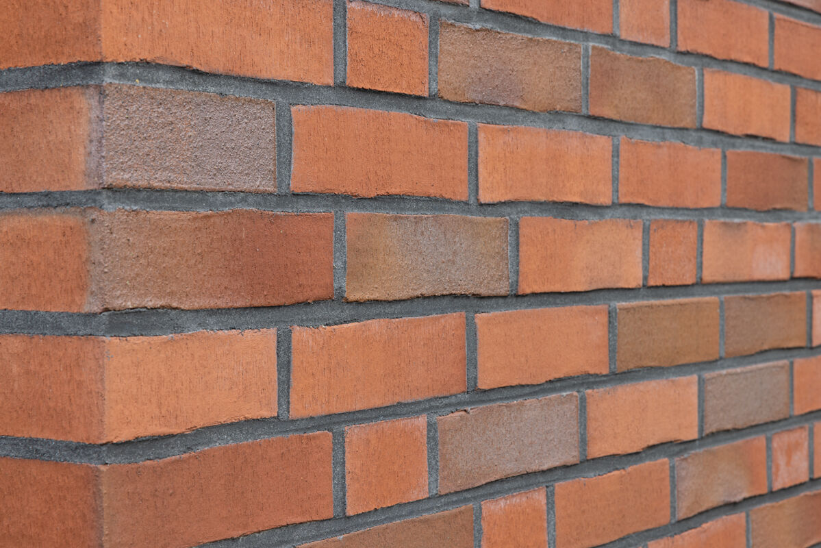 Die Wahl des passenden Klinkers für ein Einfamilienhaus erfolgt in der Regel nach drei Kriterien: Welche Farbe soll der Klinker haben, welches Klinkerformat sollen die Steine haben und nach welchem Herstellungsverfahren werden die Steine produziert. In diesem Fall haben sich die Besitzer des Einfamilienhauses 108-125-NF-H7 für einen Klinkerstein im Normalformat (NF) entschieden, so dass die einzelnen Steine mit den Maßen 240 x 115 x 71 mm (LxBxH) verbaut werden. In Kombination mit dem Strangpress-Verfahren und der Farbe rot-bunt verleiht dieser Klinker dem Einfamilienhaus eine ganz charakteristische Optik und einen individuellen Charakter.