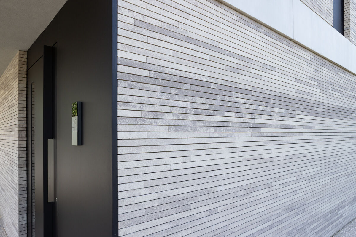 Die hier abgebildete Immobilie ist ein Einfamilienhaus 118-115-ModF-H8, dessen Fassade mit dem Strangpress-Klinker BK-118-115-ModF (Modulformat-Klinkerstein (ModF)) grau nuanciert gestaltet wurde. Die verwendeten Klinker haben ein mit Abmessungen von und werden aus hergestellt. Die Produktion der Klinker für das Einfamilienhaus erfolgt im -Verfahren. Für die Klinkerfassade des Einfamilienhauses 118-115-ModF-H8 werden pro Quadratmeter Fassadenfläche Klinkersteine verwendet, den dort verwendeten Klinker finden Sie hier: Zum Strangpress-Klinker BK-118-115-ModF (Modulformat-Klinkerstein (ModF)) grau nuanciert