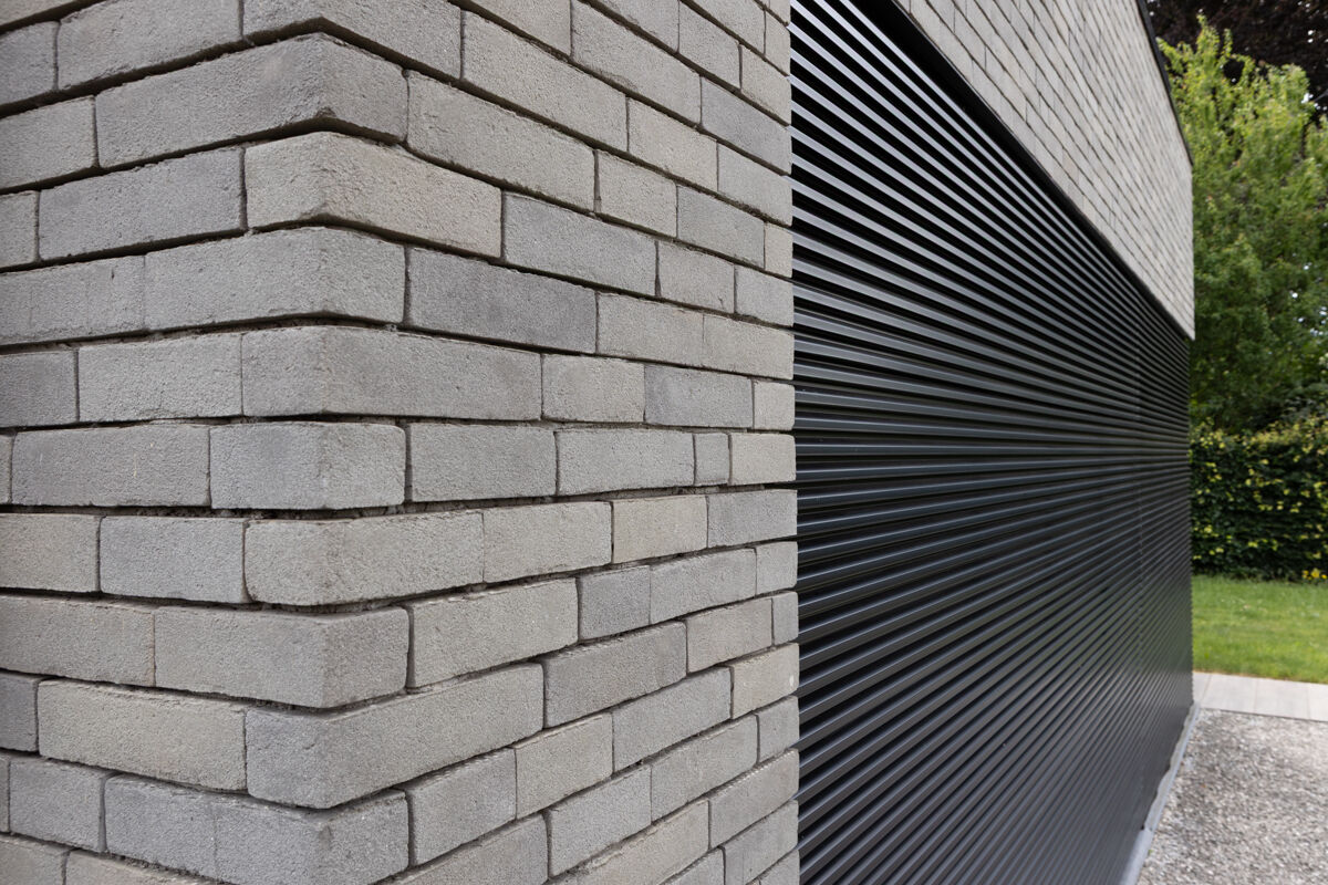 Die hier abgebildete Immobilie ist ein Einfamilienhaus 128-136-ModF-H2, dessen Fassade mit dem Wasserstrich-Klinker / Verblender BK-128-136-ModF (Modulformat-Klinkerstein (ModF)) grau bunt gestaltet wurde. Die verwendeten Klinker haben ein Modulformat (ModF) mit Abmessungen von 220 x 72 x 52 mm (LxBxH) und werden aus gebrannter Ton hergestellt. Die Produktion der Klinker für das Einfamilienhaus erfolgt im Wasserstrich-Verfahren. Für die Klinkerfassade des Einfamilienhauses 128-136-ModF-H2 werden pro Quadratmeter Fassadenfläche 68 Klinkersteine verwendet, den dort verwendeten Klinker finden Sie hier: Zum Wasserstrich-Klinker / Verblender BK-128-136-ModF (Modulformat-Klinkerstein (ModF)) grau bunt