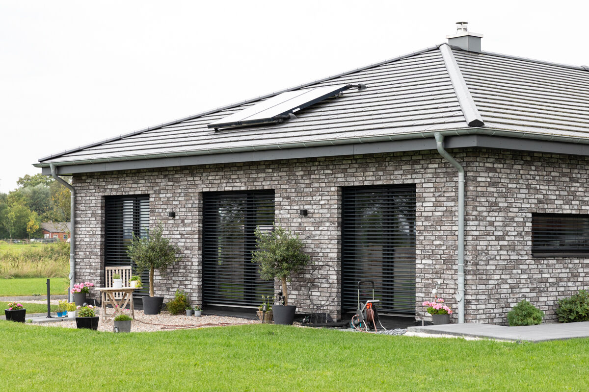 Gleichzeitig hat ein Bungalow im Vergleich zu einer Stadtvilla oder einem normalen Einfamilienhaus nur eine eher kleine Fassadenfläche, die verklinkert werden muss. Da die Anzahl der benötigten Klinkersteine über die Fläche berechnet wird (man multipliziert die Anzahl der Steine pro Quadratmeter mit der Fassadenfläche des Bungalows), benötigt man bei einer kleinere Fassade nur entsprechend weniger Klinker, was die Kosten für den Bungalow reduziert.