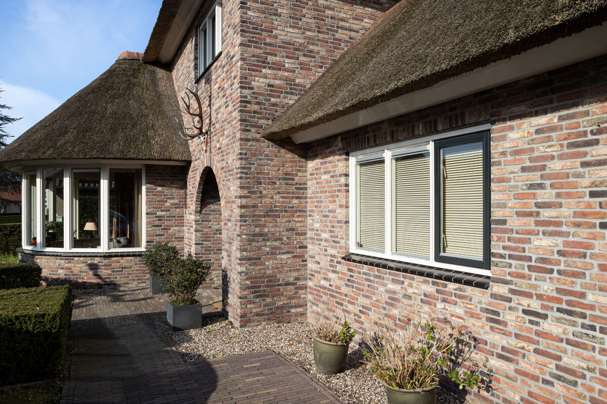 Einfamilienhäuser, insbesondere solche mit einer Klinkerfassade wie bei dem hier gezeigten Objekt mit dem Handform-Klinker / Verblender BK-120-115-WF (Waalformat-Klinkerstein (WF)) rot beige bunt, sind typischerweise eher in kleineren Städten, ländlichen Regionen oder städtischem Umland zu finden. Auch im Zuge der Nachverdichtung vieler Städte gehören einzelnstehende Einfamilienhäuser weiterhin zu den favorisierten Häusertypen, wenn es um eigene Immobilien geht, denn Objekte wie das Einfamilienhaus 120-115-WF-H1 geben den Besitzern maximale Freiheit und Unabhängigkeit von der Nachbarschaft.