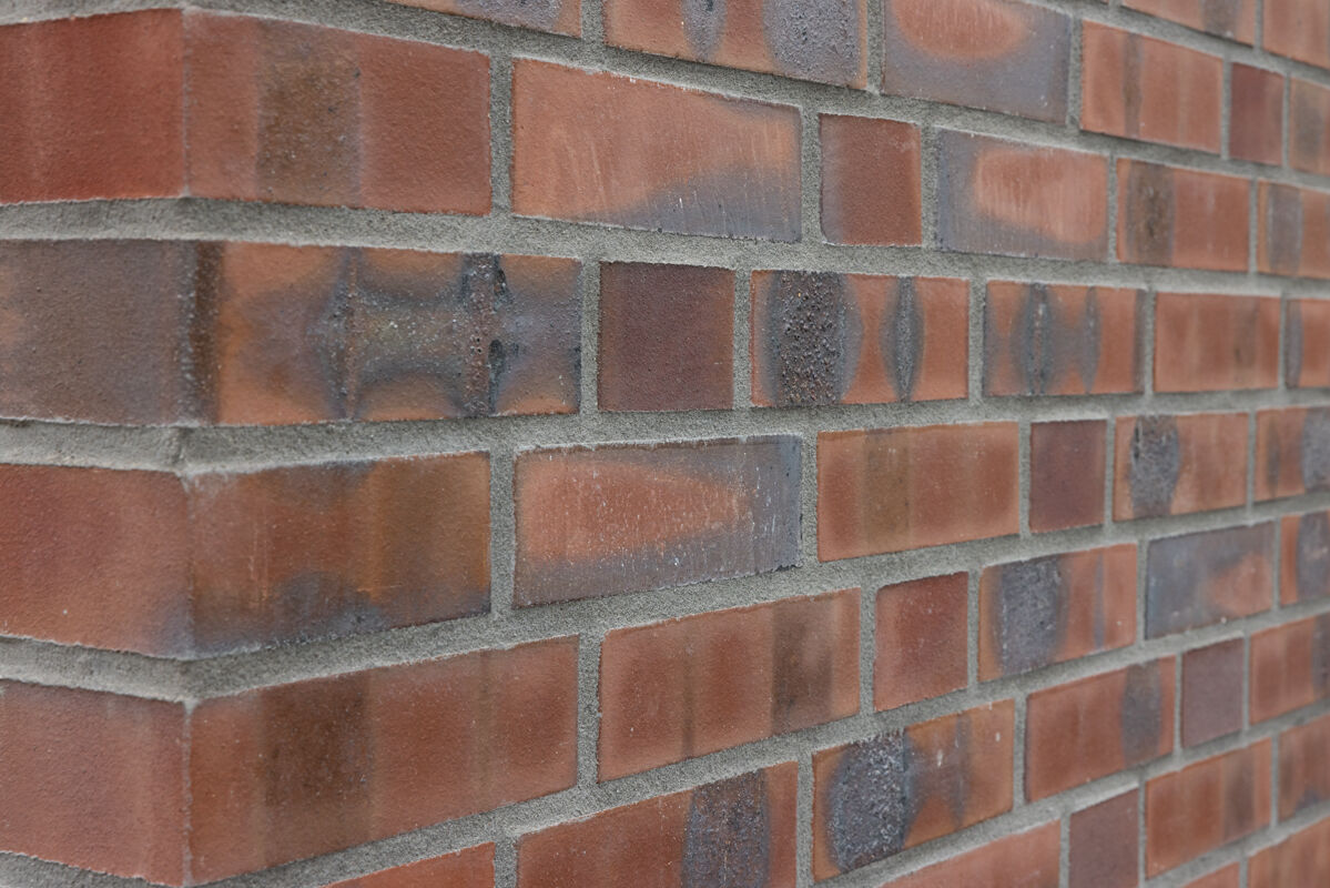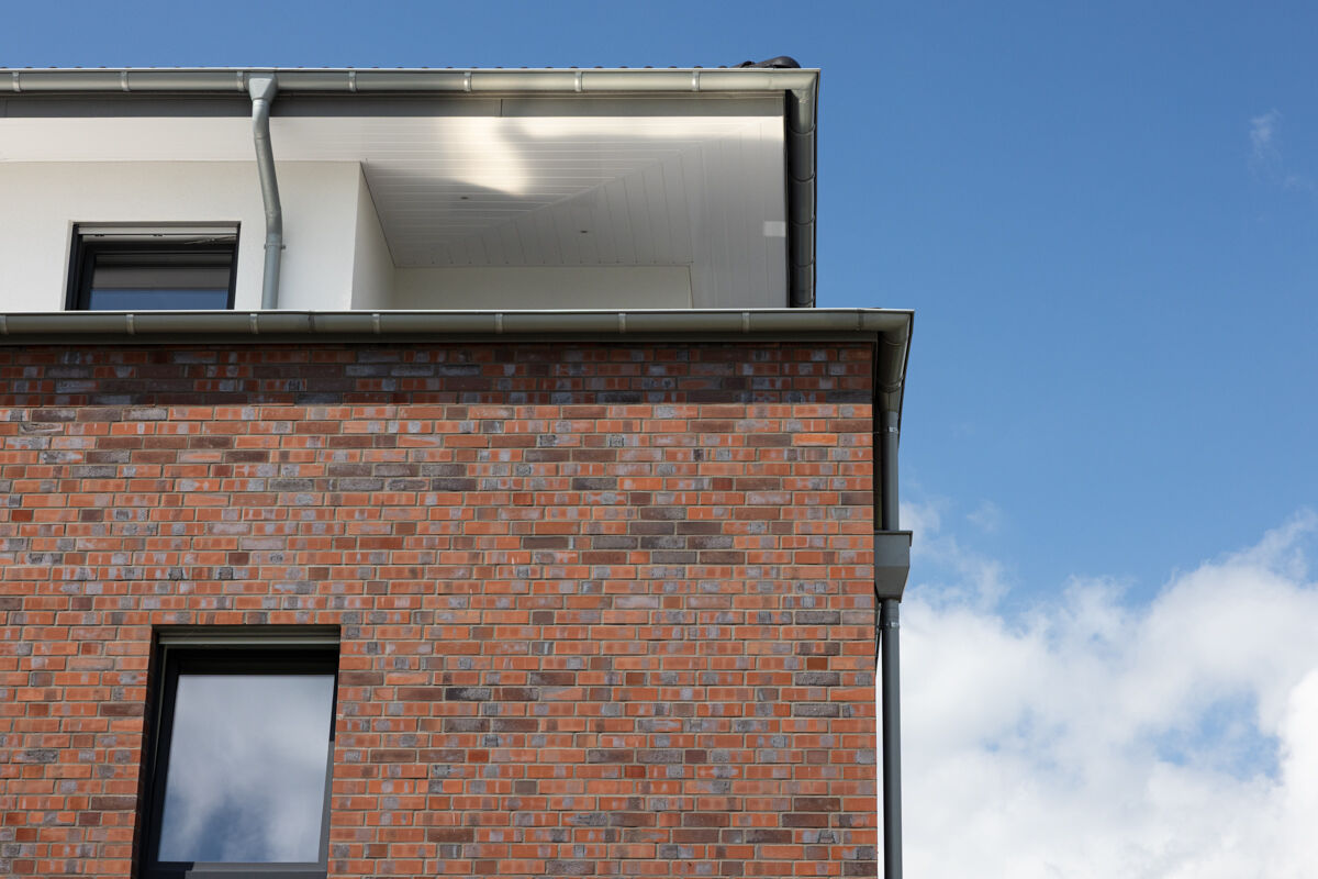 Vor der Wahl des konkreten Steins stand auch beim Mehrfamilienhaus H2 mit Klinker 108-191-NF rot bunt die Entscheidung, ob man die Fassade ganz klassisch mit einem Klinker verblendet oder ob man evtl. auf ein Klinker-Riemchen zurückgreift. Während Klinker bei Neubauten für eine Klinkerfassade zwar weiterhin am häufigsten gewählt werden, nimmt die Anzahl an Bauherren, die sich für Riemchen-Klinker entscheiden, stetig zu: Im Unterschied zum normalen Klinker sind Riemchen nur 10 bis 20mm stark und werden auf direkt auf die Fassade geklebt.
