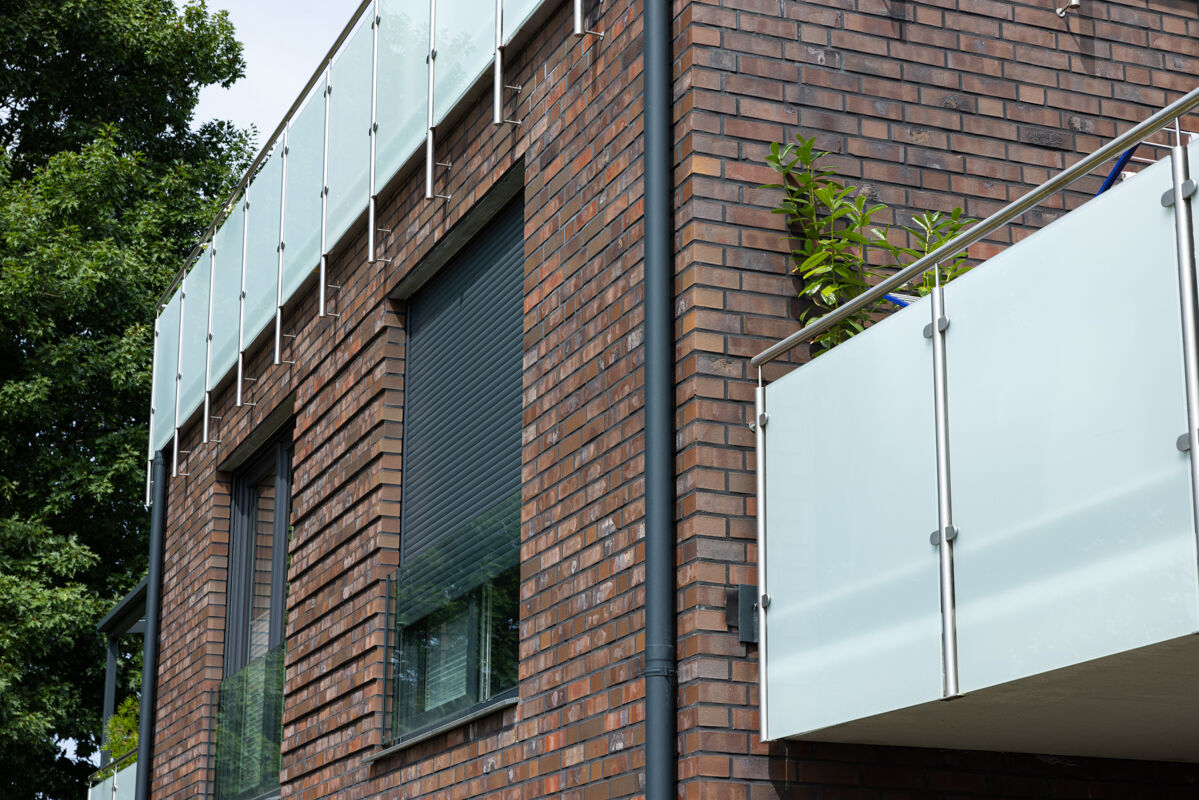 Vor der Wahl des konkreten Steins stand auch beim Mehrfamilienhaus H26 mit Klinker 104-123-NF rot-braun, Kohle die Entscheidung, ob man die Fassade ganz klassisch mit einem Klinker verblendet oder ob man evtl. auf ein Klinker-Riemchen zurückgreift. Während Klinker bei Neubauten für eine Klinkerfassade zwar weiterhin am häufigsten gewählt werden, nimmt die Anzahl an Bauherren, die sich für Riemchen-Klinker entscheiden, stetig zu: Im Unterschied zum normalen Klinker sind Riemchen nur 10 bis 20mm stark und werden auf direkt auf die Fassade geklebt.