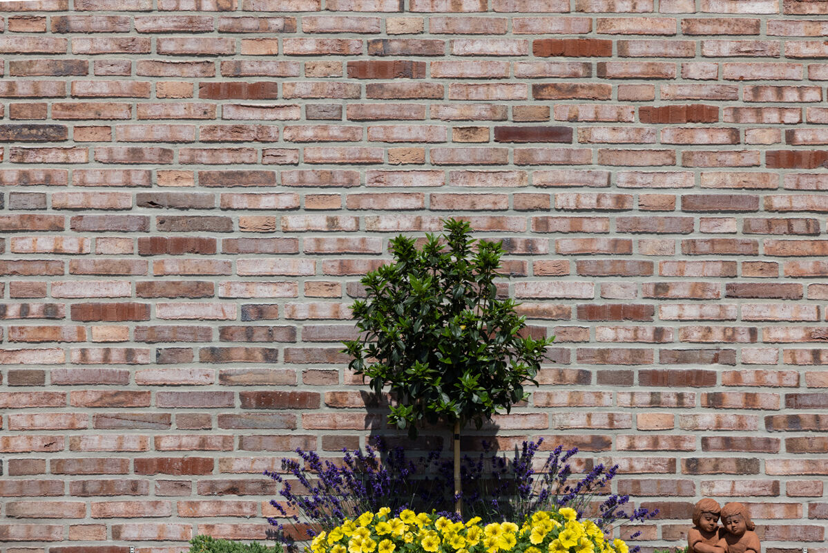 Vor der Wahl des konkreten Steins stand auch beim Einfamilienhaus H3 mit Klinker 101-161-DF rot - bunt - Kohle die Entscheidung, ob man die Fassade ganz klassisch mit einem Klinker verblendet oder ob man evtl. auf ein Klinker-Riemchen zurückgreift. Während Klinker bei Neubauten für eine Klinkerfassade zwar weiterhin am häufigsten gewählt werden, nimmt die Anzahl an Bauherren, die sich für Riemchen-Klinker entscheiden, stetig zu: Im Unterschied zum normalen Klinker sind Riemchen nur 10 bis 20mm stark und werden auf direkt auf die Fassade geklebt.