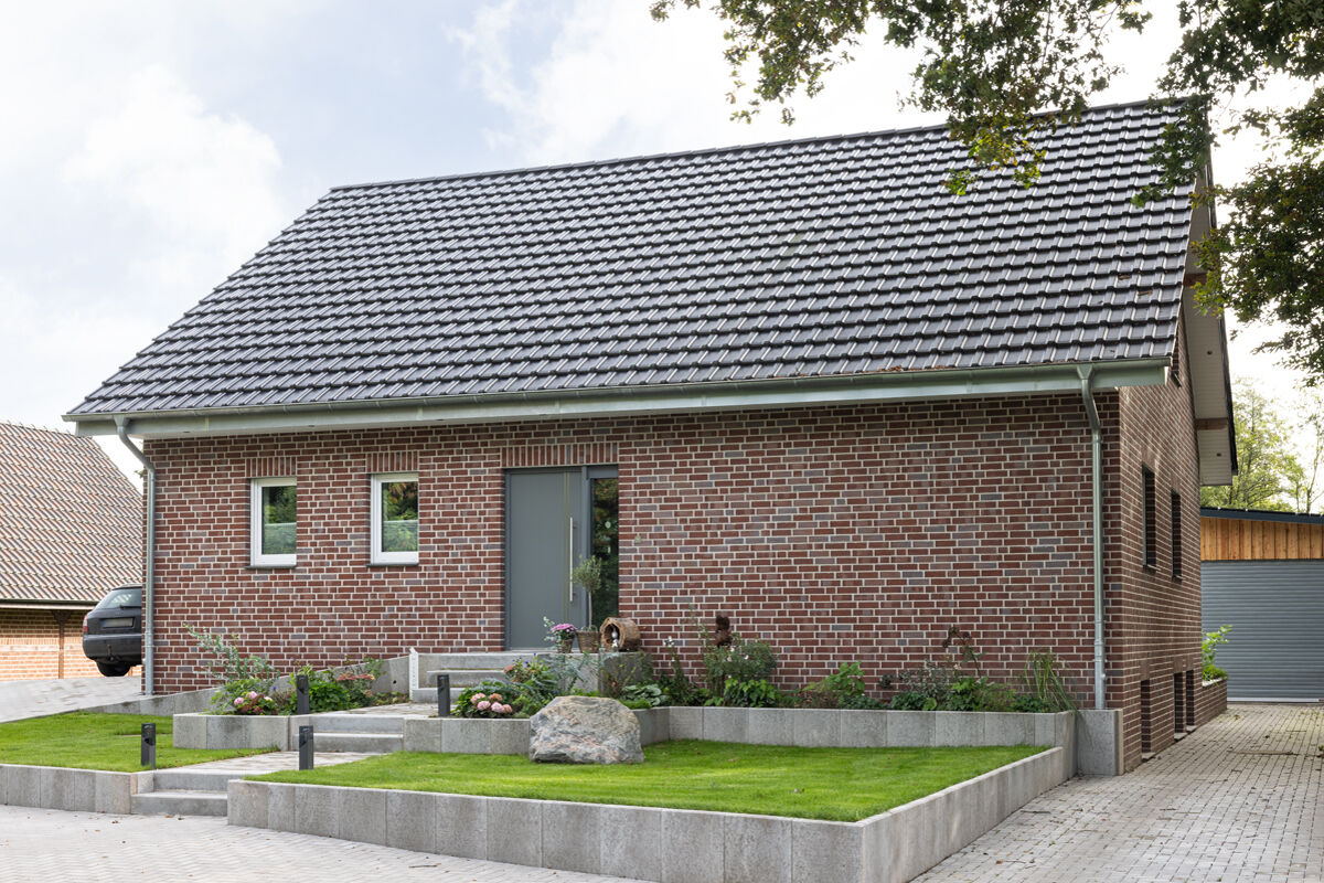 Einfamilienhäuser, insbesondere solche mit einer Klinkerfassade wie bei dem hier gezeigten Objekt mit dem Strangpress-Klinker BK-108-111-NF (Normalformat-Klinkerstein (NF)) rot-bunt, sind typischerweise eher in kleineren Städten, ländlichen Regionen oder städtischem Umland zu finden. Auch im Zuge der Nachverdichtung vieler Städte gehören einzelnstehende Einfamilienhäuser weiterhin zu den favorisierten Häusertypen, wenn es um eigene Immobilien geht, denn Objekte wie das Einfamilienhaus 108-111-NF-H2 geben den Besitzern maximale Freiheit und Unabhängigkeit von der Nachbarschaft.